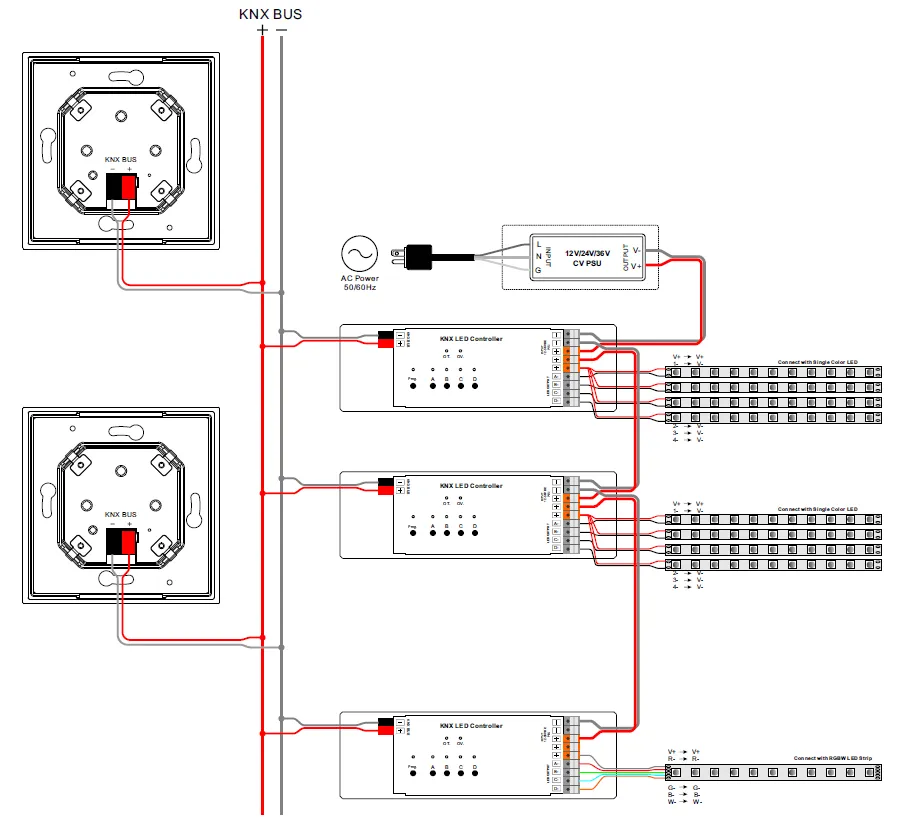 Управление через выключатели с обычной электрикой выглядет также как и с системой KNX, свет будет включаться, но: в обычной электрике состояние светильника зависит от конкретной клавиши, подключенной к нему и они подключены через фазу 220 вольт.