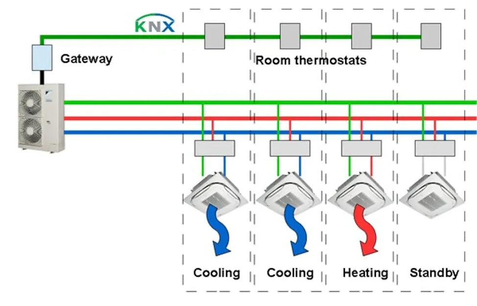 Самое большое преимущество KNX в том, что есть управление центральными и децентрализованными системами кондиционирования.