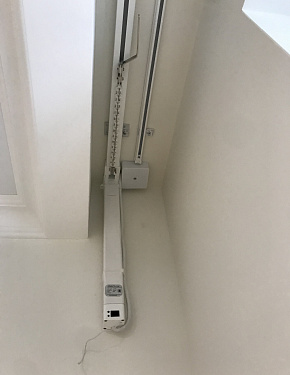 Возле окна устанавливается электрический двигатель, за счет которого и происходит процесс передвижения штор по цепочке. Стоит отметить, что электрические карнизы очень аккуратно перемещают шторы, что исключает возможность их испортить. Электродвигатель данной системы полностью бесшумный, что не приносит неудобств. Для того, чтобы привести карниз в действие можно использовать специальный дистанционный пульт. Также есть и другой вариант (но он менее удобный), это установить выключатель для штор. Данный выключатель очень напоминает выключатель для света. Он не занимает много места и его можно скрыть. Очень часто используют карнизы, которые имеют сразу два способа управления системой. Это намного удобнее в том случае, если нет электричества, то можно использовать пульт.