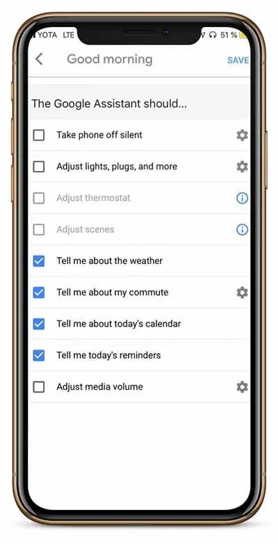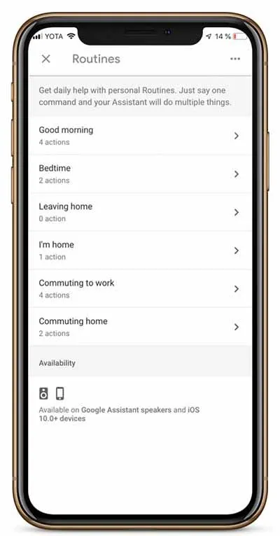 Своим пользователям Google умный дом предлагает набор стандартных сценариев, например, «доброе утро» или «я дома». Подобная голосовая команда автоматически запускает определенный набор операций. Например, в первом случае может включаться мягкий свет, открываются шторы, включается кофе-машина и так далее. Набор команд и действий при этом не имеет ограничений, и определяется исключительно желаниями владельца дома и количеством устройств, подключенных к системе умного дома.