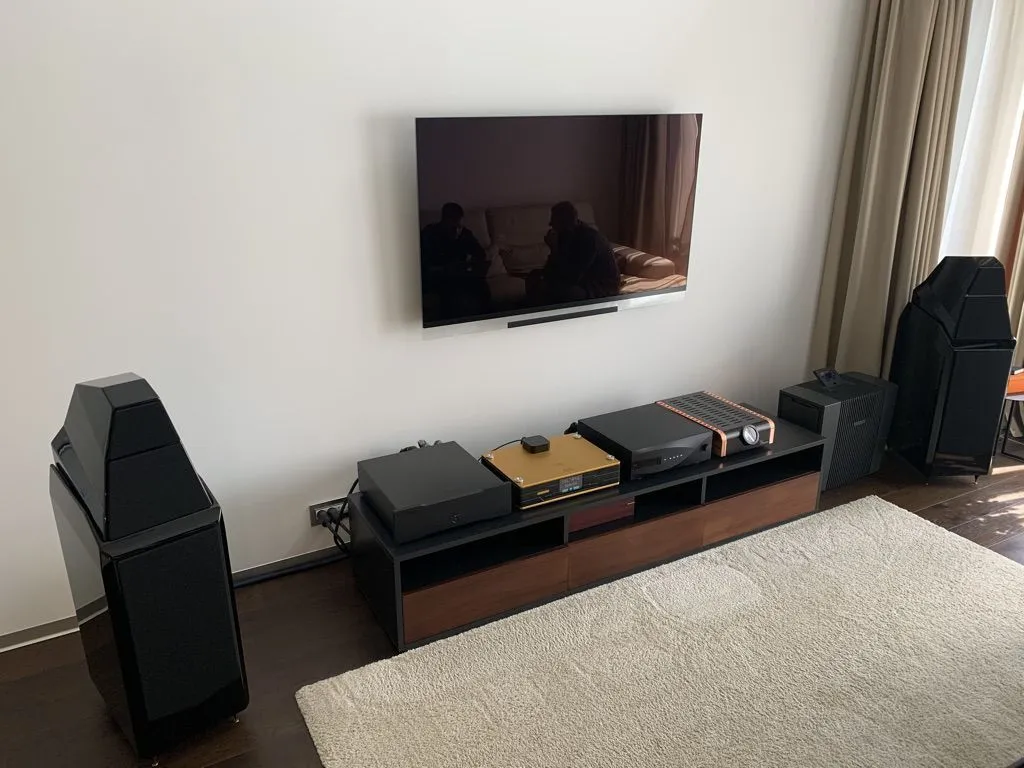 Установка трех точек раздачи Wi-Fi и программное обеспечение позволили обеспечить наличие бесшовного пространства во всей квартире. Сложной задачей стало создание кинотеатра, сочетающего не только высокое качество звука, но и шумоизоляцию, чтобы исключить дискомфорт для соседей.