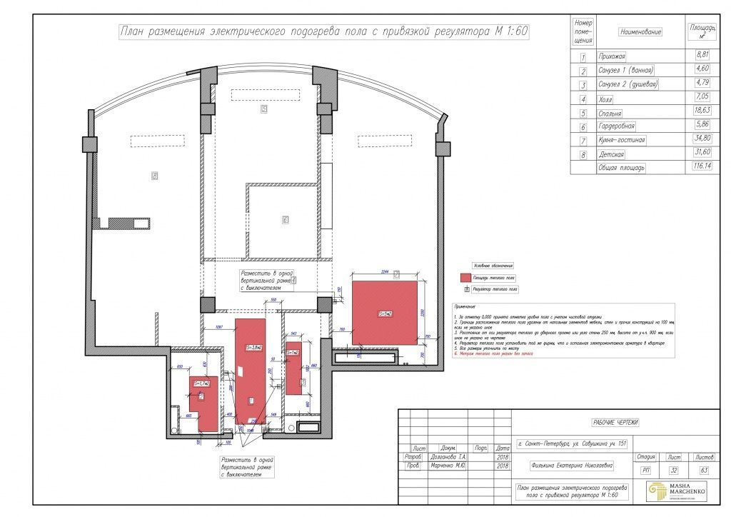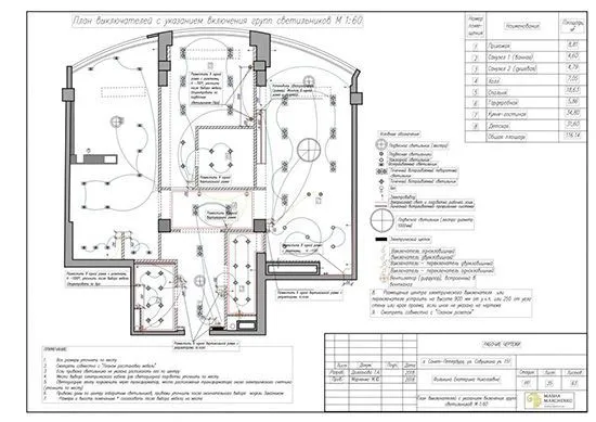 В рамках реализации проекта потребовалось создание отдельных подсистем, призванных обеспечить управление отоплением в доме и теплыми полами. Создан план освещения с указанием мест расположения источников света и средств управления ими (выключатели).