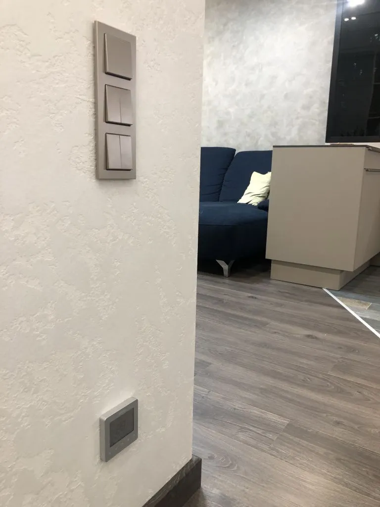 Квартира в многоэтажном жилом доме по ул.Савушкина площадью 110 кв.м. Требования заказчика предусматривали использование беспроводных решений и предельную простоту управления. Основой создаваемой системы «Умный дом» стали средства автоматизации компаний Noolite и Fibaro. Еще до обращения в компанию заказчиком в квартире проведены электромонтажные работы.Установленные системы: