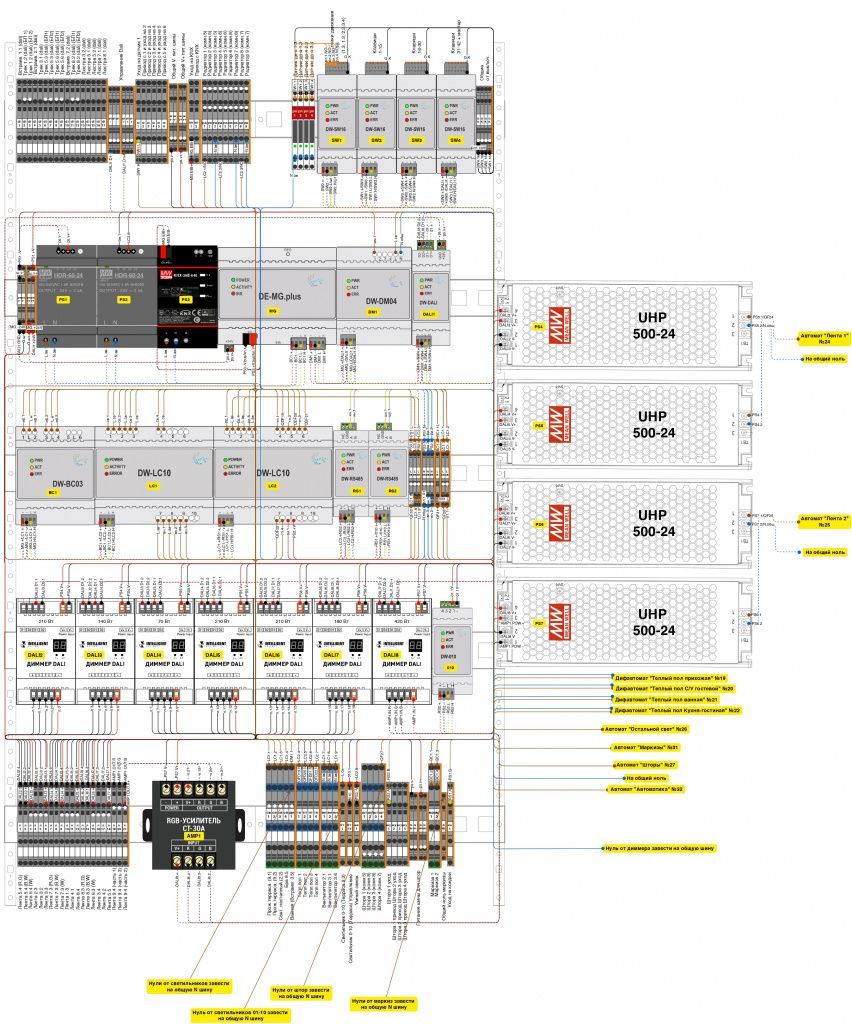 Для реализации проекта использовалось качественное немецкое оборудование. С компанией Larnitech умный дом получает необходимую надежность и безопасность.