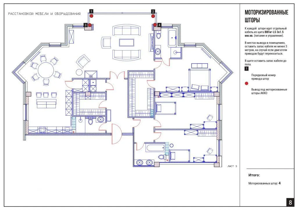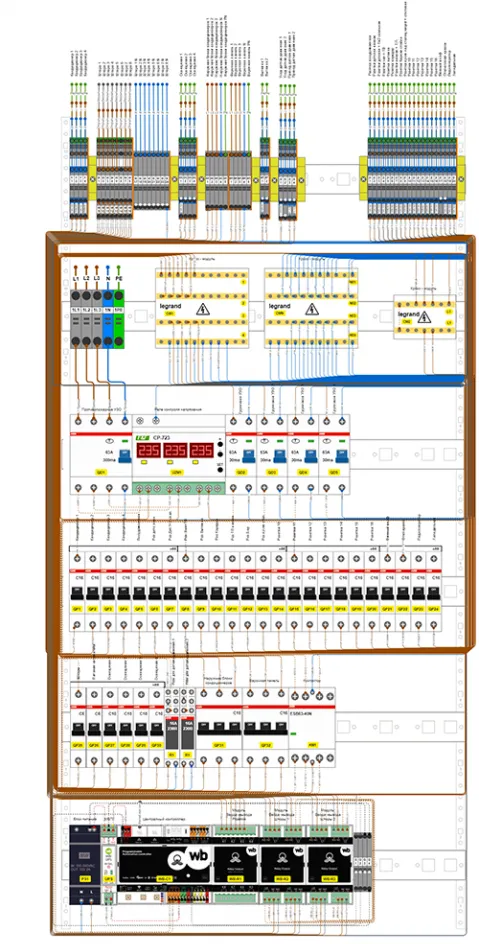 Была предусмотрена расстановка модулей теплых полов, разработана схема размещения универсальных датчиков.