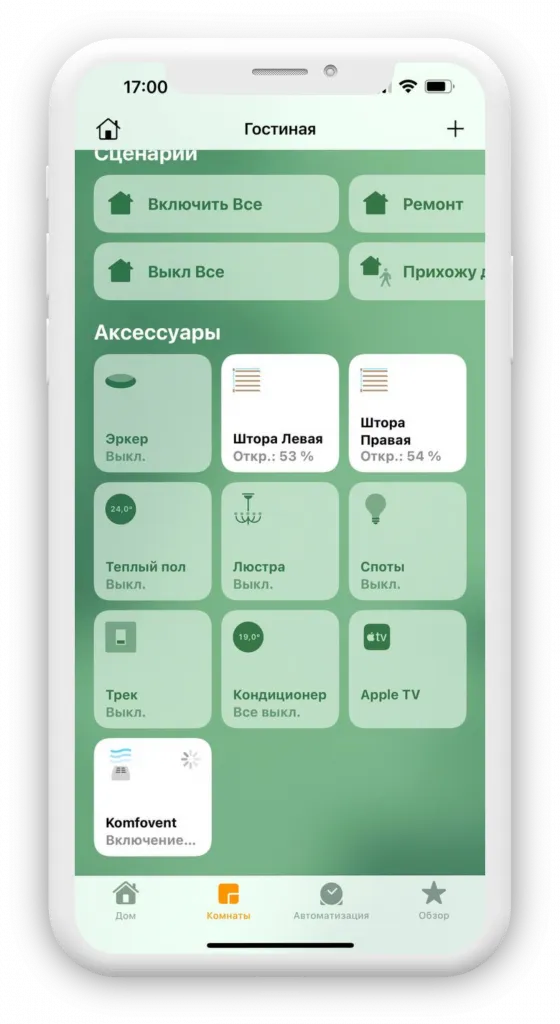 Управление «умным домом» сосредоточено в приложении «Дом» сервиса HomeKit от корпорации Apple.