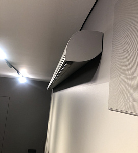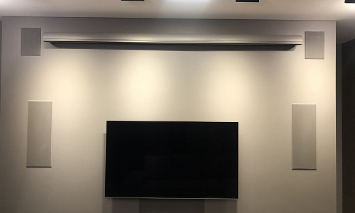 При установке системы использовалось современное оборудование, поддерживающее технологии Dolby Atmos, Dolby Digital и другие, что вместе с установкой крупного широкоформатного экрана, позволяет обеспечить полноту погружения в просматриваемый контент.
