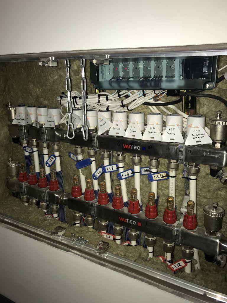 Реализовано автоматическое управление климатом в доме за счет регулирования работы обогревательных приборов и теплого пола, позволяющее в минимальный срок обеспечить повышение или понижение температуры до заданных параметров. Обеспечено поддержание минимальной температуры 5-7°C в жилых и технических помещениях дома во время длительного отсутствия хозяев. Автоматическое управление рекуператорами позволяет моментально избавляться от угарного газа, образующегося при топке камина.