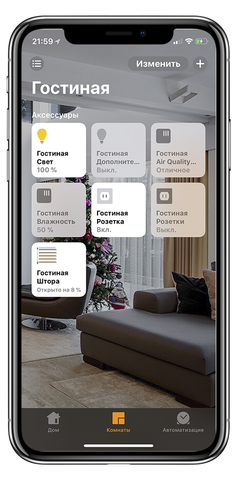 - главная страница — в ней перечислены все смарт — устройства умного дома;