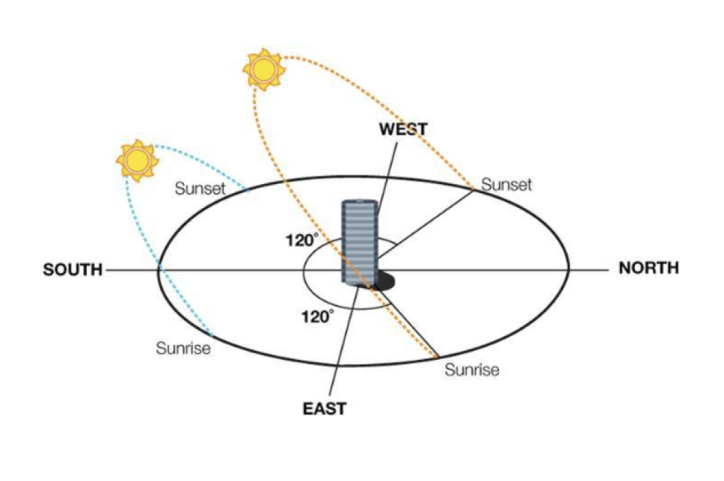 Система интеллектуально отслеживает положение солнца, зная его местоположение в любое время дня.