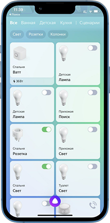 - Для того, чтобы управлять умным домом голосом, вам нужно подключить к приложению Яндекс устройства умного дома, такие как светильники, кондиционеры, розетки и т.д.